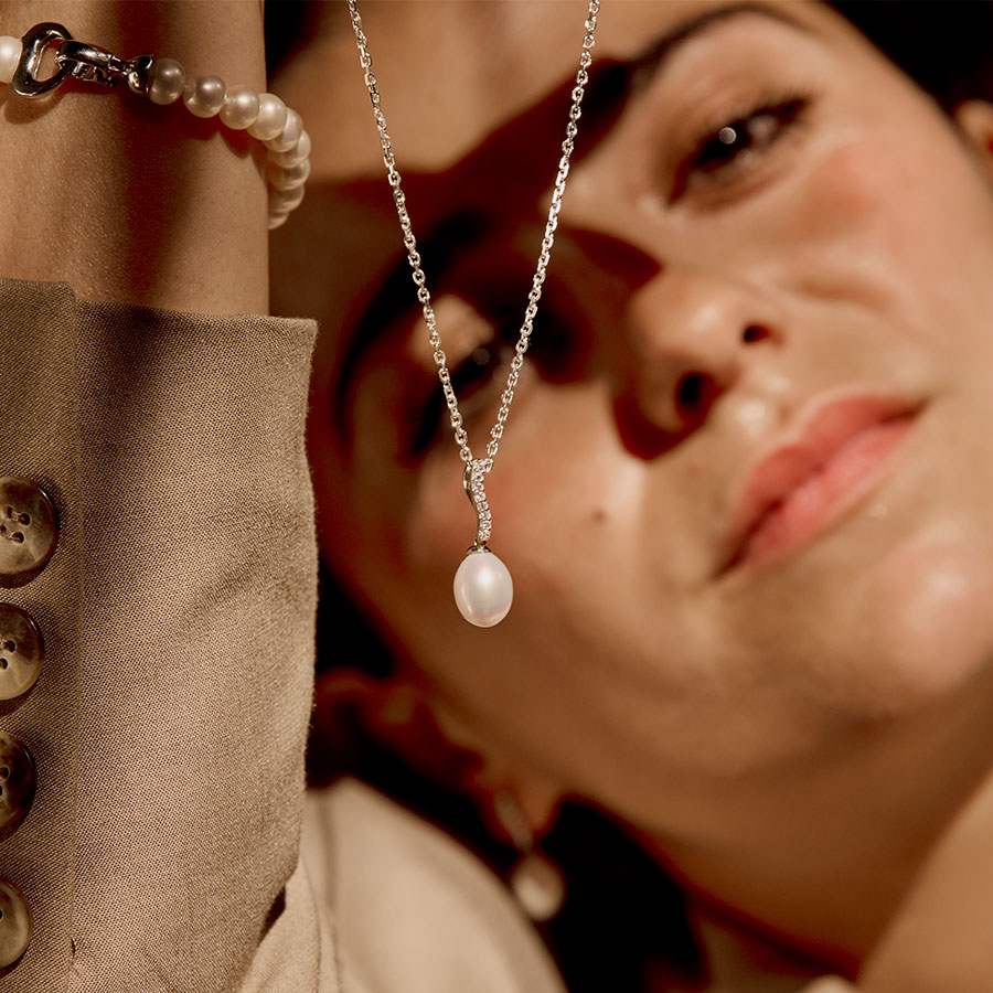 La perla Drop es característica por su forma de pera o lagrima y es idónea para colgantes y pendientes.