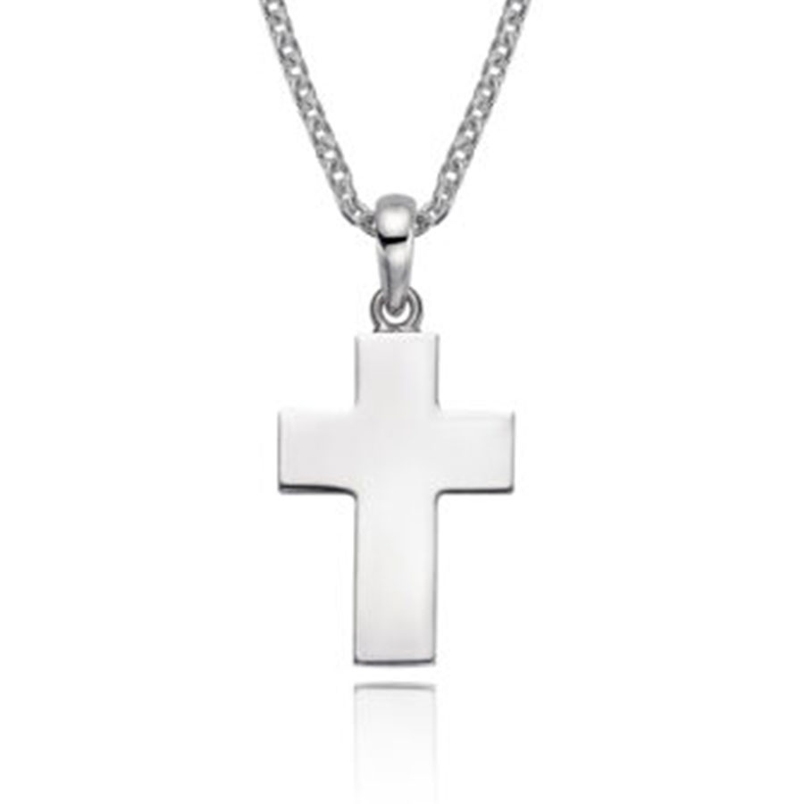 Cadena de calabrotes en plata de ley 925 de 60 cm de largo de extremo a extremo y 15 gramos de peso, acompañada por una cruz de plata de ley de 4 cm de largo por 2 cm de ancho.